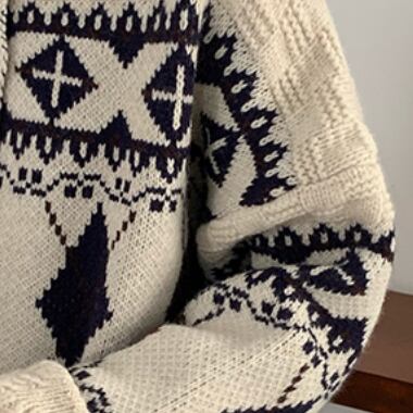 カジュアルからオフィスシーンまで、幅広く着こなせるレトロパターンニットカーディガンが登場!ミディアム丈でラウンドネック、ワイドシルエットのイージーニットは、大人可愛いスタイルから、上品でクールなカジュアルまで、あらゆるシーンにマッチします。また、レトロなパターンがこなれ感をプラスし、主役級に仕上げます。