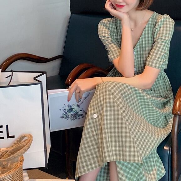・チェック柄で、イエローとグリーンが可愛らしいワンピースです。