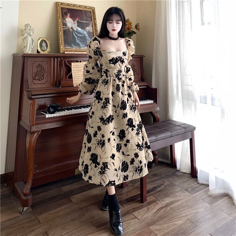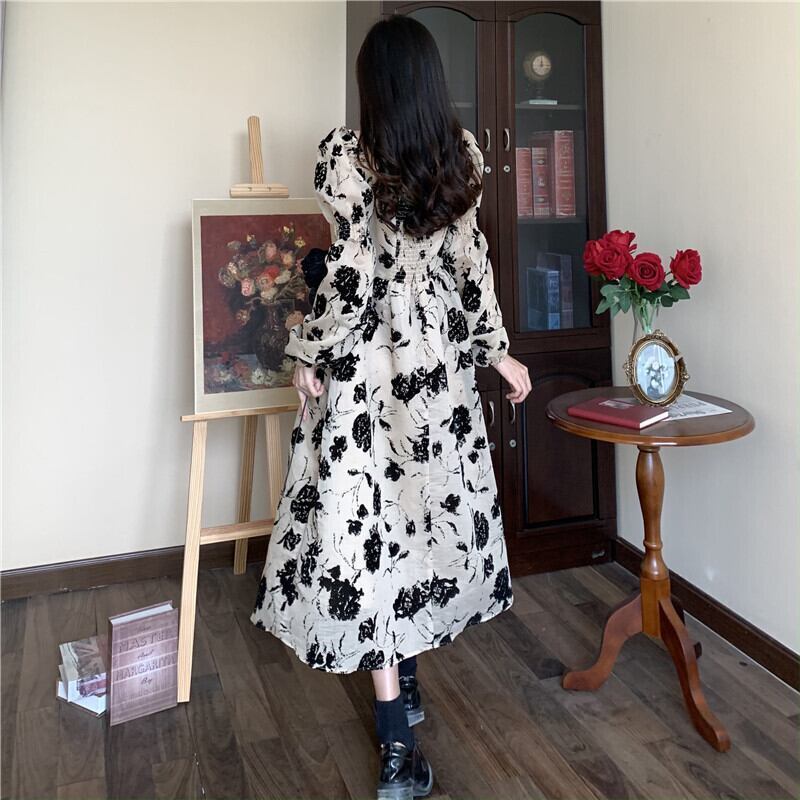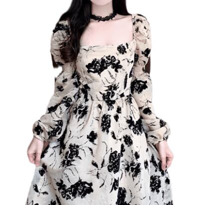 ワンピース レディース フローラルドレス 花柄ワンピース フラワー 小花 フラワーワンピ パフスリーブ袖 シック アプリコット プリーツドレス 新しい デザイン センス 洋風 ロングセクション ウエスト カジュアル プラスサイズ オールインワン セミフレア かわいい 大人可愛い きれいめ シンプル 大人 上品 おしゃれ お洒落 ラフ キュート カジュアル 普段使い エレガント 存在感 10代 20代 30代 デート お出かけ 女子会 休日 パーティー リゾート 旅行 海 韓国 オルチャン