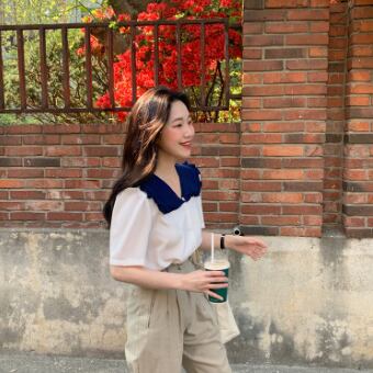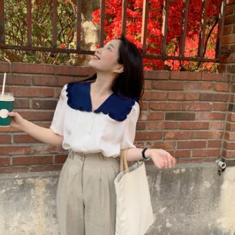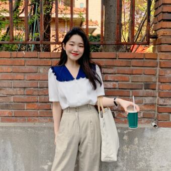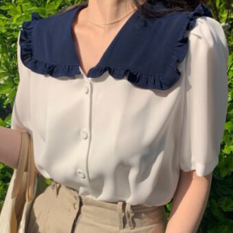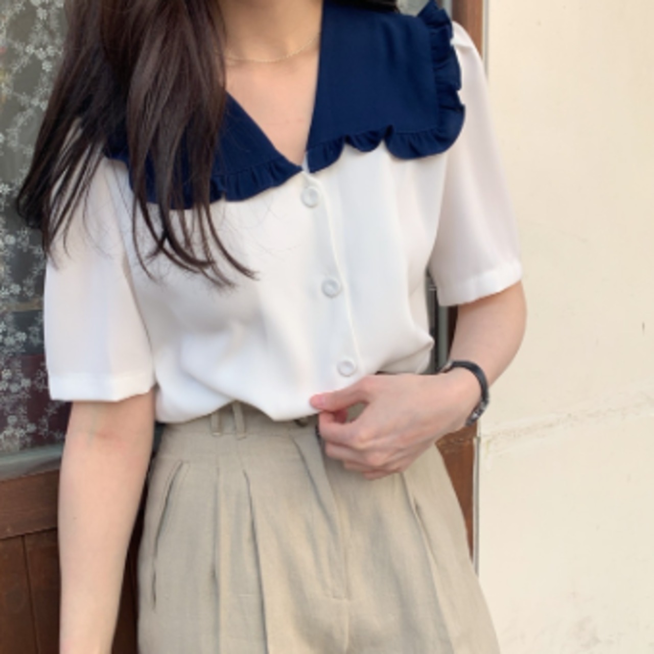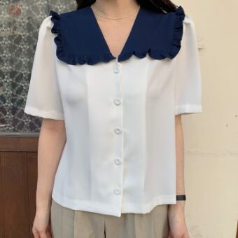ビッグカラーシャツ トップス シャツ 半袖 Vネック 襟付き バイカラー かわいい 大人可愛い おしゃれ お洒落 レトロ 大人可愛い 大人女子 キュート ガーリー 個性的 主役級 存在感 無地 春 夏 10代 20代 30代 レディース 女性用 ママ 女の子 学生 デート お出かけ 女子会 お泊まり 休日 着回し 韓国 韓国系 オルチャン ファッション コーデ スタイル モテ 新作 定番 送料無料 トレンド 流行 インスタ映え インポート 海外 人気 大人カジュアル 女子力 こなれ感 ビッグカラー