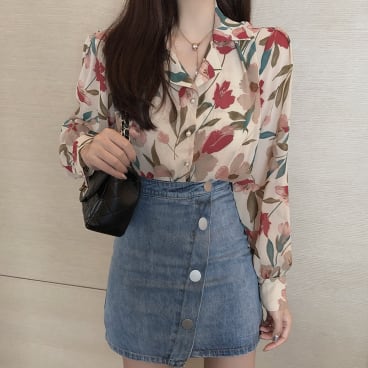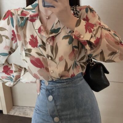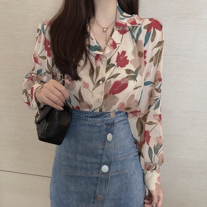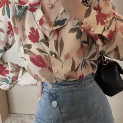 トップス シャツ 長袖 Vネック 襟付き バイカラー かわいい 大人可愛い おしゃれ お洒落 レトロ 大人可愛い 大人女子 キュート ガーリー 個性的 主役級 存在感 柄 花柄 フラワー 春 夏 10代 20代 30代 レディース 女性用 ママ 女の子 学生 デート お出かけ 女子会 お泊まり 休日 着回し 韓国 韓国系 オルチャン ファッション コーデ スタイル モテ 新作 定番 送料無料 トレンド 流行 インスタ映え レトロ ヴィンテージ インポート 海外 人気 大人カジュアル とろみ感 女子力