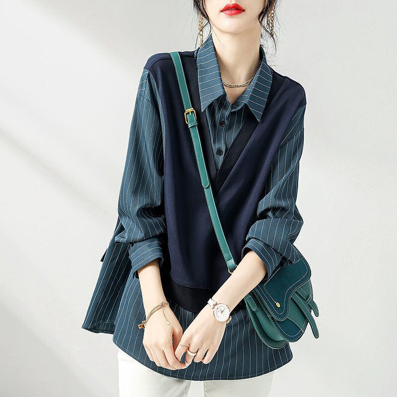 ご覧いただきありがとうございます。当店では、今季注目のストラップ柄シャツをお届けしています!グリーンの爽やかな色合いがコーディネートをオシャレに見せてくれる、トップス・シャツ・ブラウスとして様々な場面で活躍する一枚です。