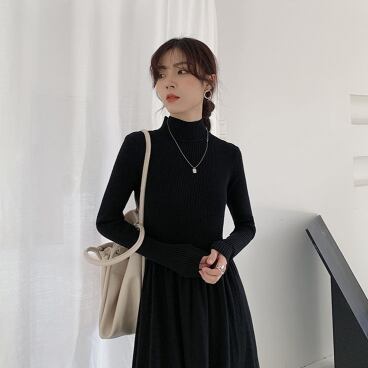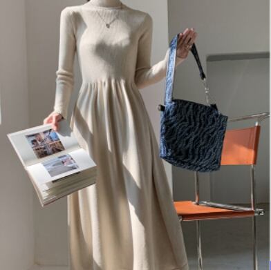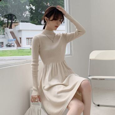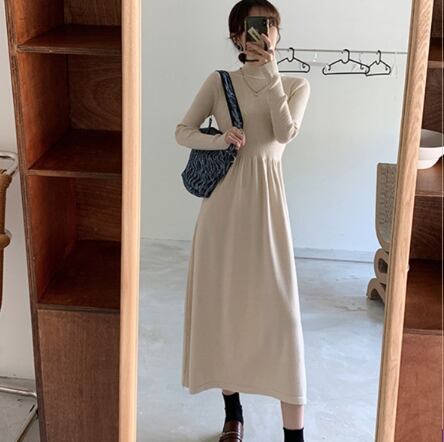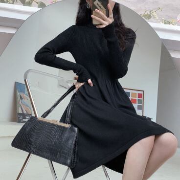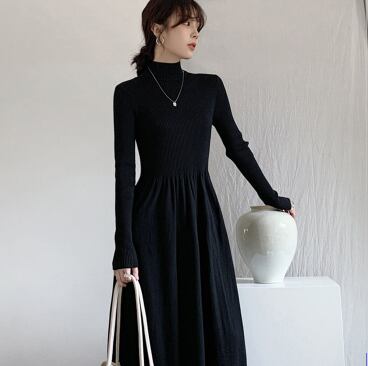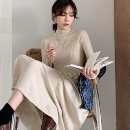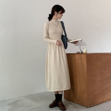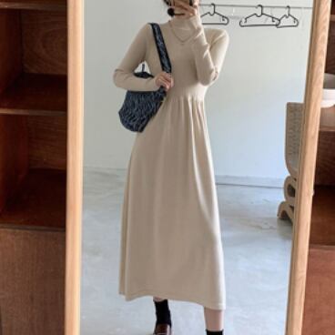 シンプルでエレガントなタートルニットワンピースです。