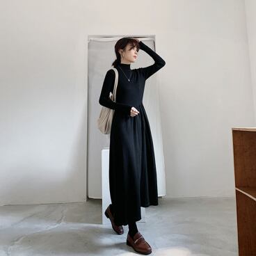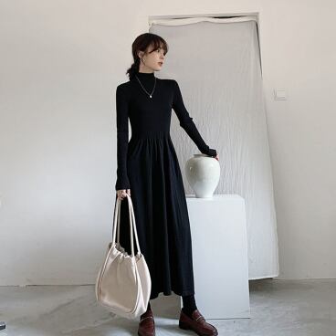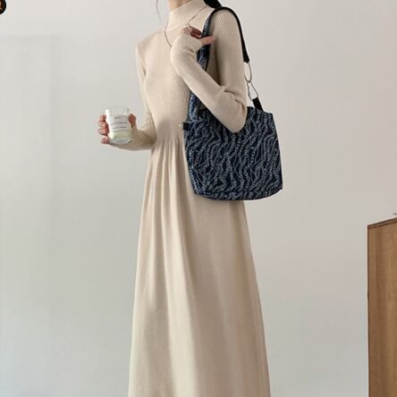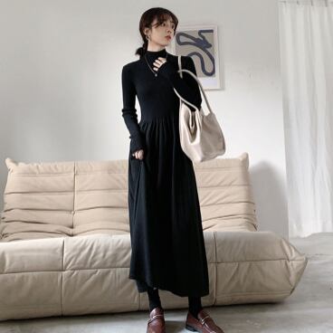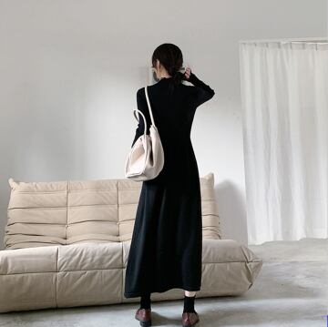 シンプルなデザインでありながら、存在感のあるタートルネックワンピース。シンプルだからこそ、アクセサリーやシューズでアレンジ次第で様々なテイストに変化します。