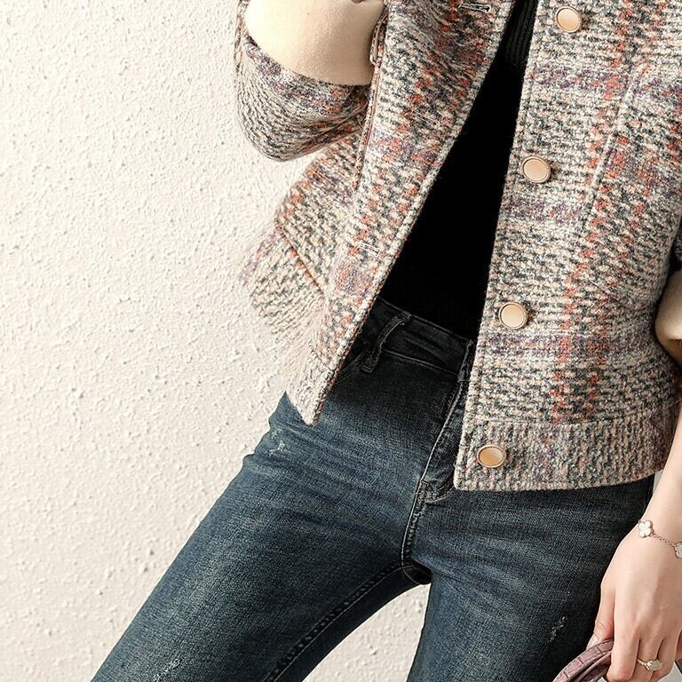 チェック柄ジャケットは、シンプルで大人可愛いスタイルを作るのにぴったりのアウターです。スマートで細身のシルエットが、女性らしい曲線美を強調してくれます。春、秋はもちろん冬の防寒にも重宝するので、一着あるととても使い勝手がいいですよ。