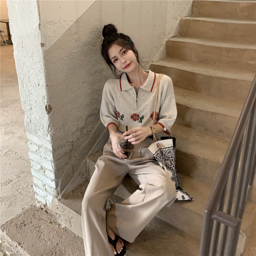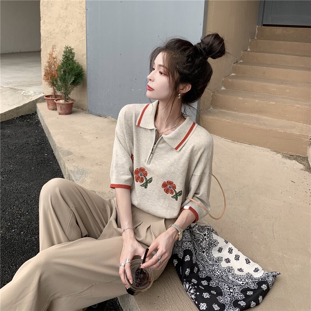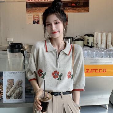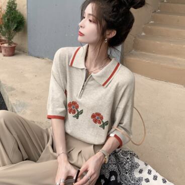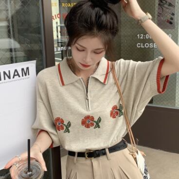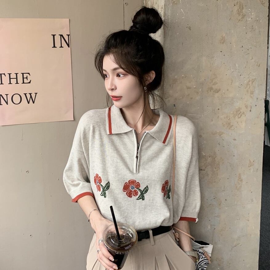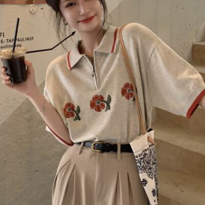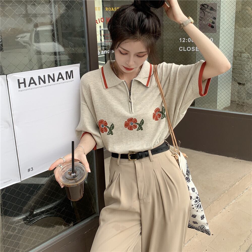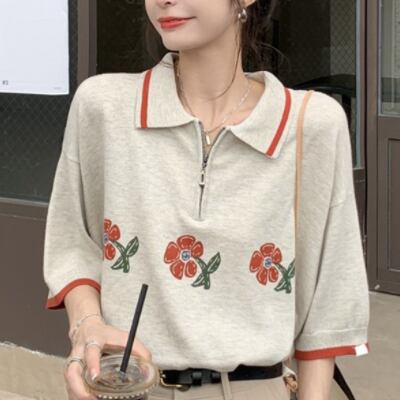 トップス カットソー 半袖 襟付き ファスナー かわいい 大人可愛い シンプル カジュアル おしゃれ お洒落 レトロ 大人可愛い 大人女子 キュート ガーリー 主役級 存在感 柄 花柄 フラワー 春 夏 10代 20代 30代 レディース 女性用 ママ 女の子 学生 デート お出かけ 女子会 お泊まり 休日 着回し 普段使い 韓国 韓国系 ファッション コーデ スタイル モテ 新作 定番 送料無料 トレンド 流行 インスタ映え インポート 海外 人気 大人カジュアル バイカラー 女子力 コスパ