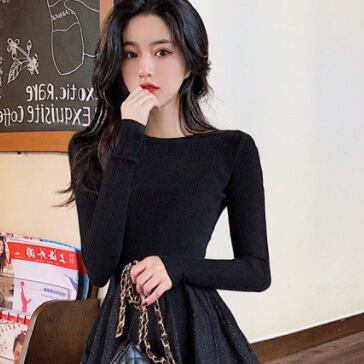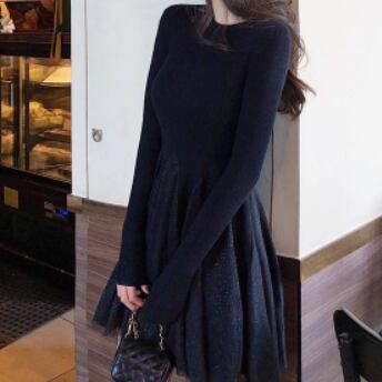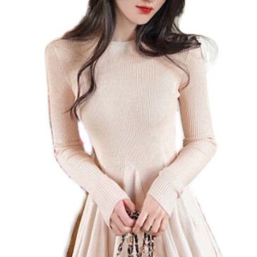 切り替えデザインがお洒落なニットワンピースです。