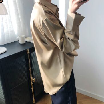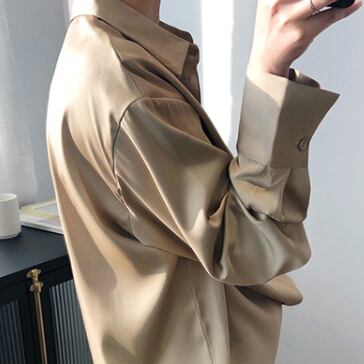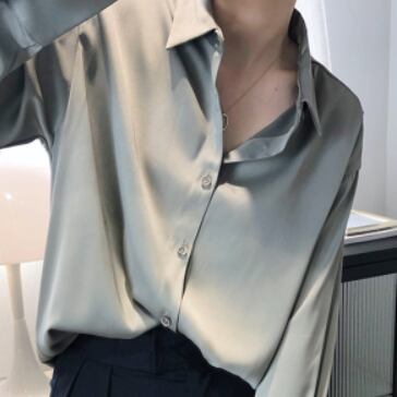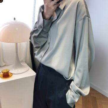 光沢のあるサテン生地が大人っぽいシャツです。