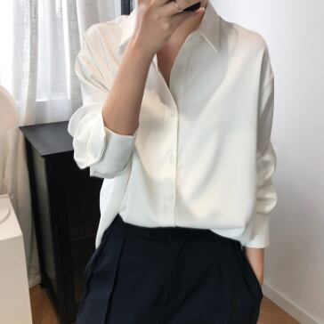サテンシャツ トップス シャツ 白シャツ 白トップス 長袖 襟付き かわいい 大人可愛い きれいめ シンプル 上品 おしゃれ お洒落 大人可愛い 大人女子 こなれ感 ラフ メンズライク キュート ガーリー 個性的 エレガント 主役級 存在感 とろみ感 無地 春 秋 冬 10代 20代 30代 40代 レディース 女性用 ママ 女の子 オフィス OL 通勤 学生 通学 デート お出かけ 女子会 お泊まり 休日 パーティー イベント 着回し 韓国 韓国系 ファッション コーデ スタイル 楽ちん インポート