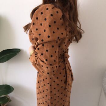 今期注目のボリューム袖ワンピースが入荷しました!シンプルなVネックに、キュートなドット柄が女性らしい雰囲気を演出します。タイトなシルエットでスマートに着こなせるので、大人っぽくて個性的なスタイルが叶います。肌触りの良いコーデュロイ素材で、秋冬の季節感も楽しめますよ。