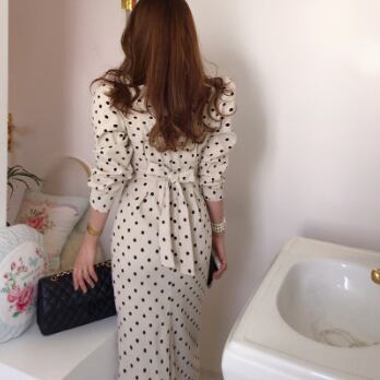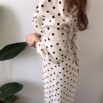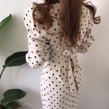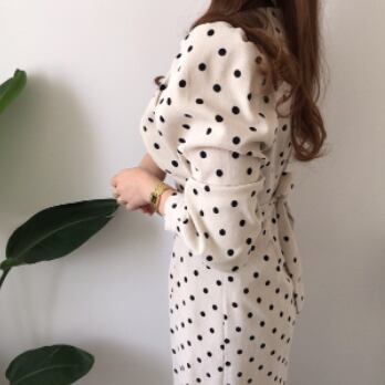 ボリューム袖が特徴的なドット柄ワンピースです。