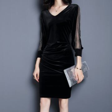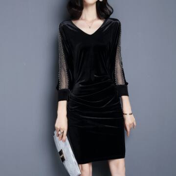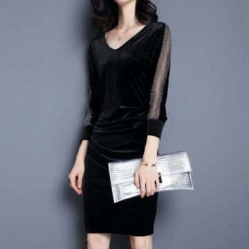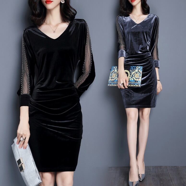 大人可愛いパーティードレス、ミニ丈でシンプルながらも存在感があります。Vネックと細めのシルエットが、女性らしさを引き立てます。膝上丈で、ヒールと合わせてスタイルUPも叶います。7分袖があるので、季節を問わず着回せるデザインです。シーズンレスでオールシーズン活躍すること間違いなしです!