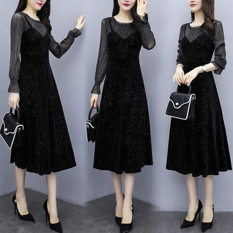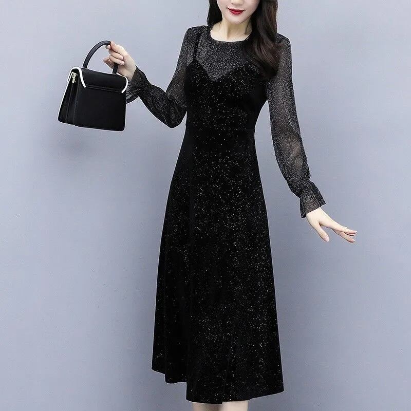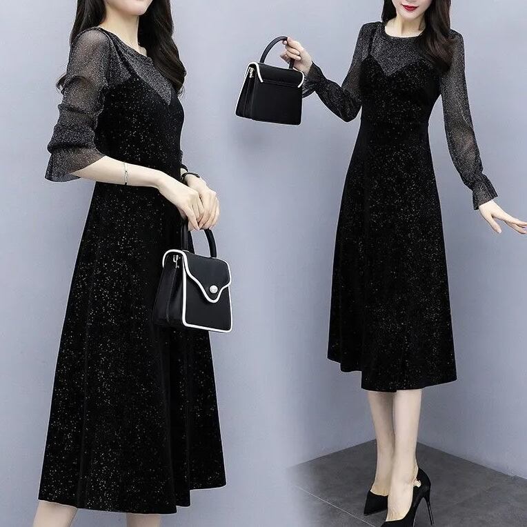 パーティードレス ワンピース 膝下 長袖 ラウンドネック ラメ キラキラ かわいい 大人可愛い きれいめ 大人 上品 おしゃれ お洒落 大人可愛い 大人女子 キュート ガーリー 個性的 セクシー エレガント 主役級 存在感 フォーマル 無地 春 夏 秋 冬 オールシーズン シーズンレス 結婚式 二次会 披露宴 10代 20代 30代 40代 レディース 女性用 ママ 女の子 パーティー イベント 韓国 韓国系 ファッション コーデ スタイル モテ 送料無料 トレンド 流行 インスタ映え インポート 海外