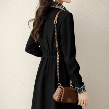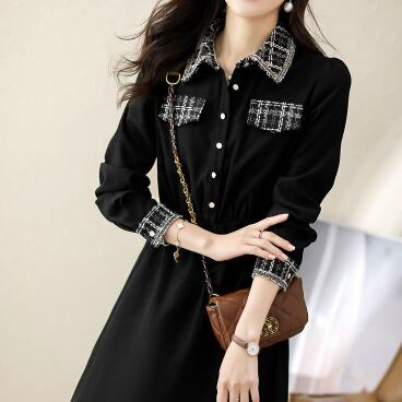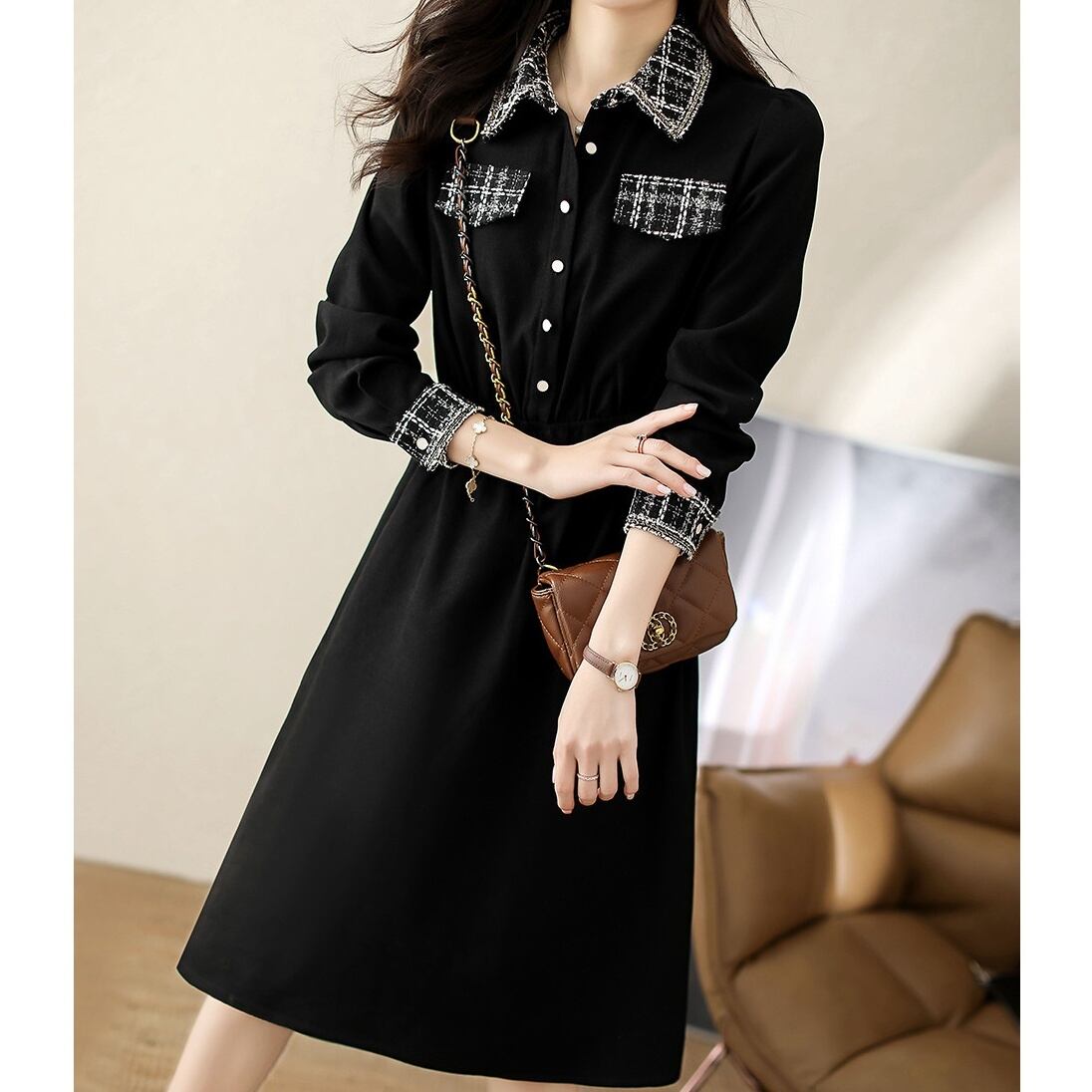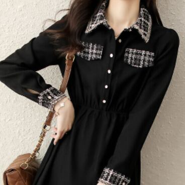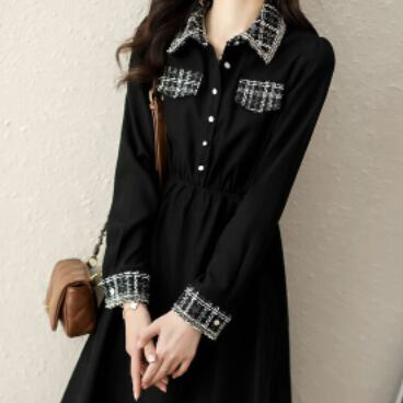 チェック柄とブラックのコントラストがお洒落なワンピースです。
