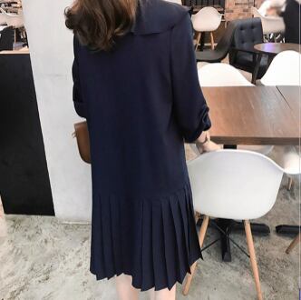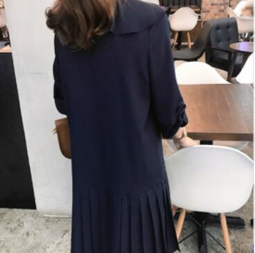 カラーは、春夏でも重宝するネイビーをご用意しました。丁寧に縫製された切り替えデザインとプリーツは、一目で見ると分かる高級感があります。オフィスにも、レストランにも、デートにも着用していただけます。レトロでガーリー、大人女子にぴったりのデザインです。