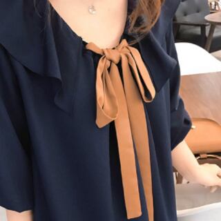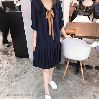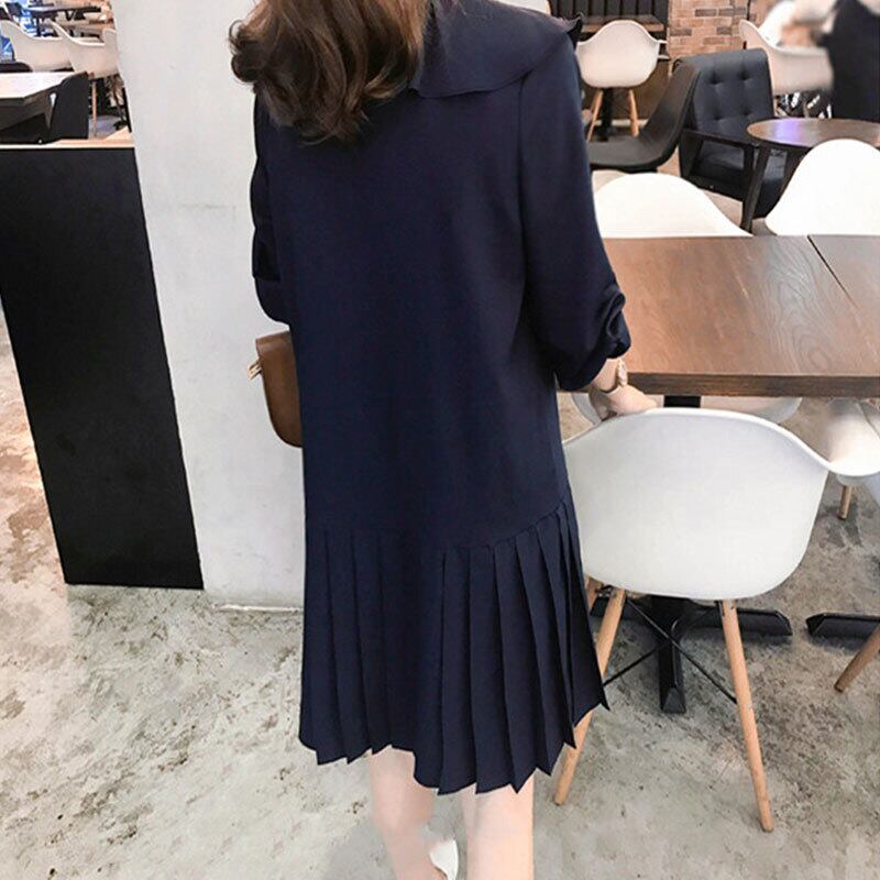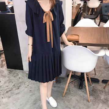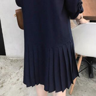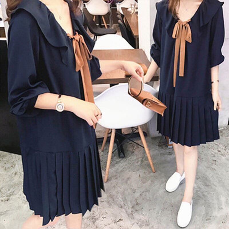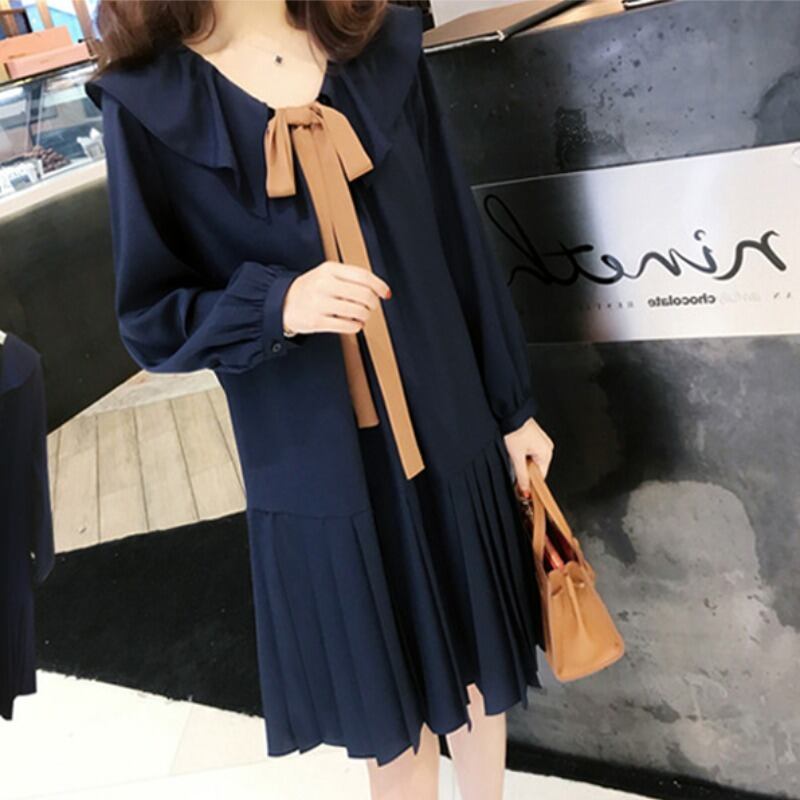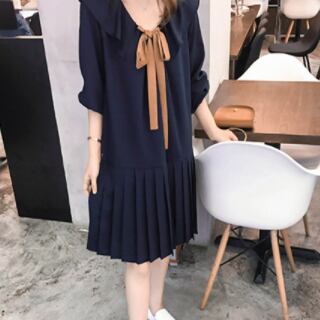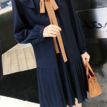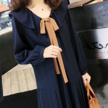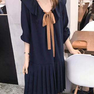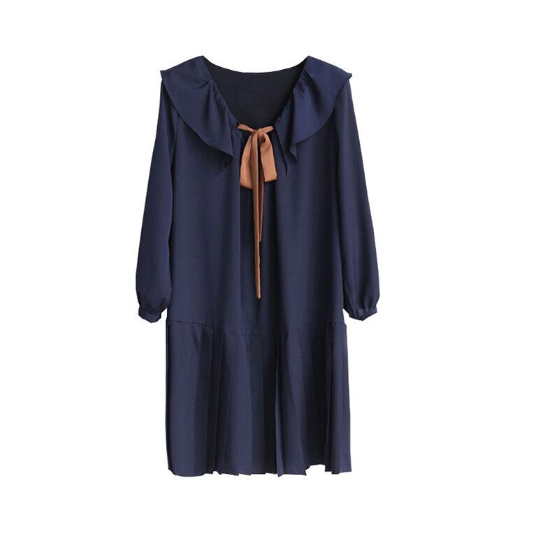ラッフルカラー 配色リボン プリーツ切替え ローウエスト ワンピース ミディアム丈 膝上 ひざ丈 長袖 Vネック 襟付き Aライン 切り替えデザイン プリーツ 切り替えデザイン かわいい 大人可愛い きれいめ シンプル カジュアル 上品 おしゃれ レトロ 大人女子 ガーリー 無地 春 秋 冬 レディース 女性用 女の子 学生 通学 デート お出かけ 休日 レストラン 着回し 普段使い 重ね着 韓国系 オルチャン スタイル 体系カバー 新作 L XL 2XL 3XL 4XL 大きいサイズ ネイビー