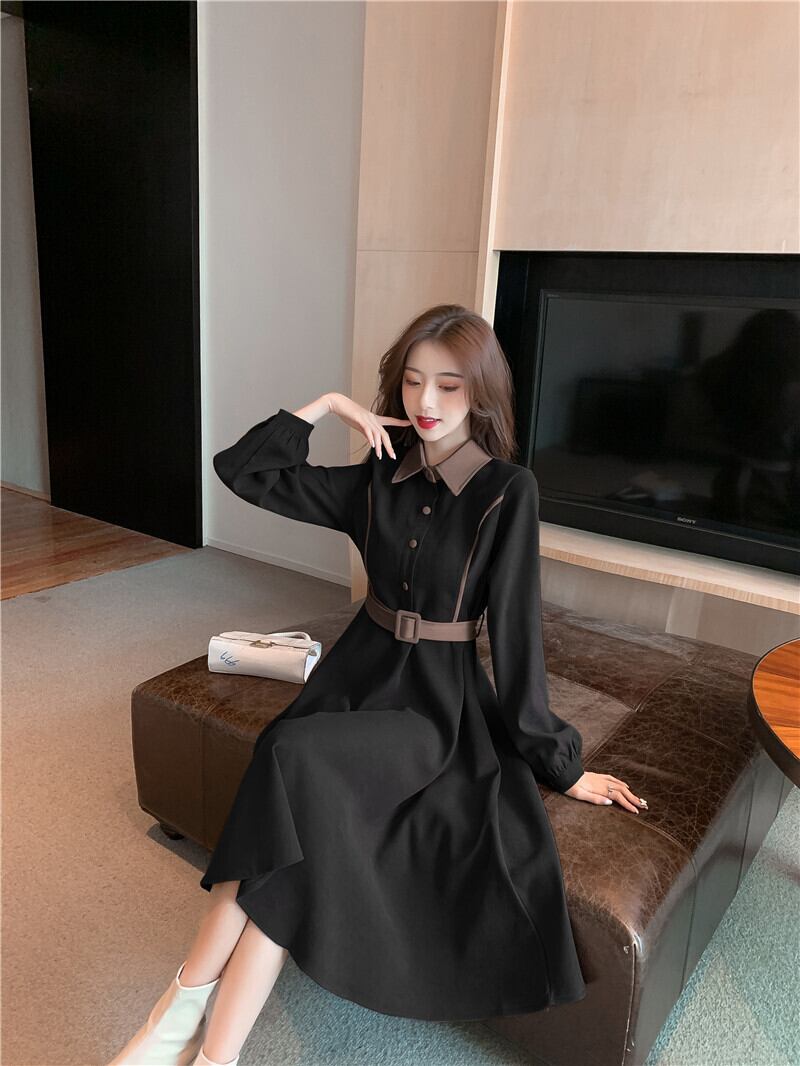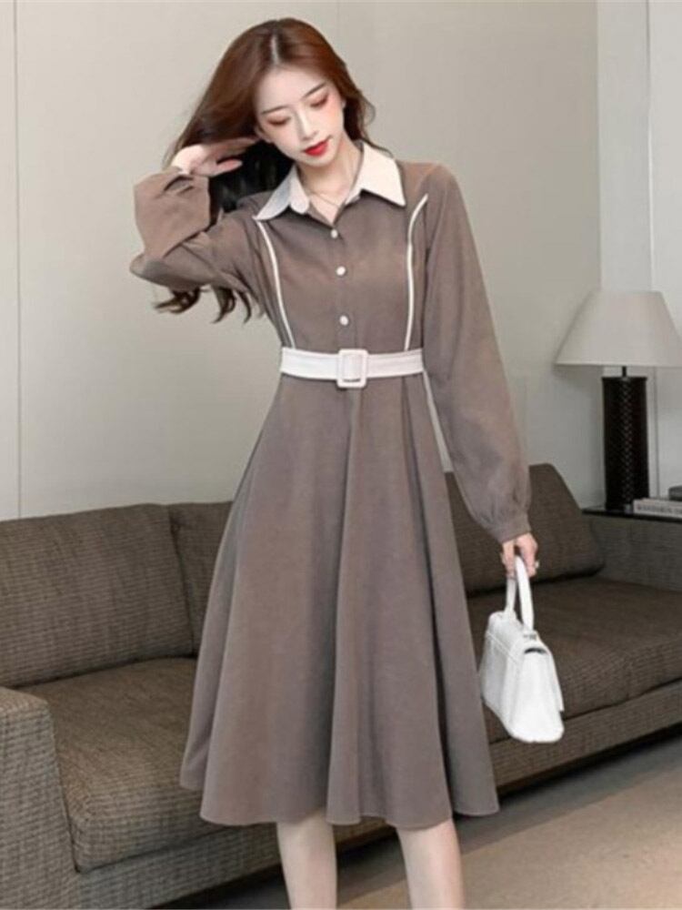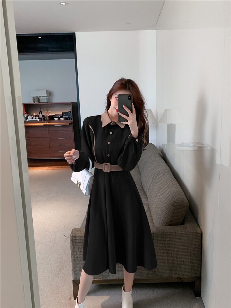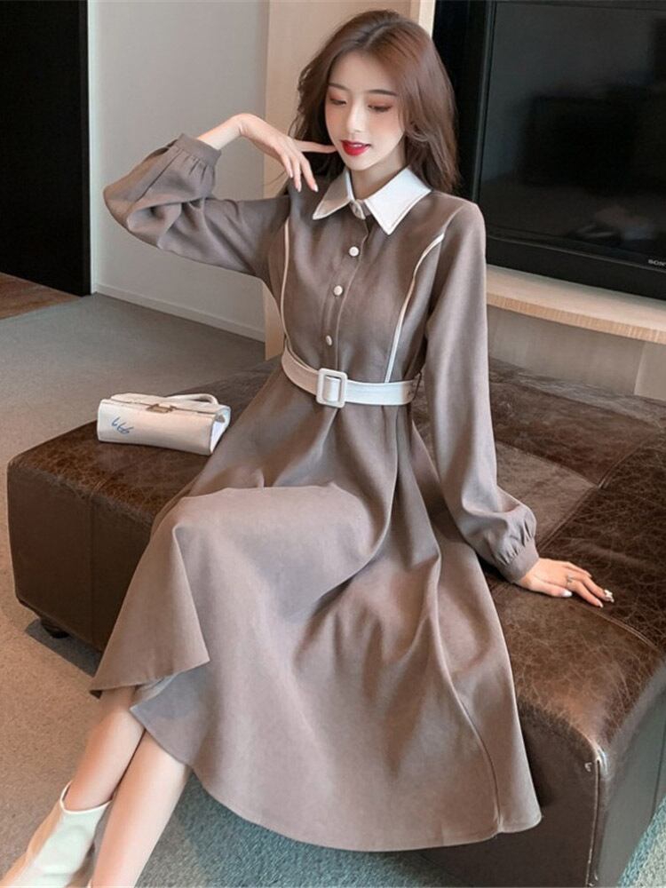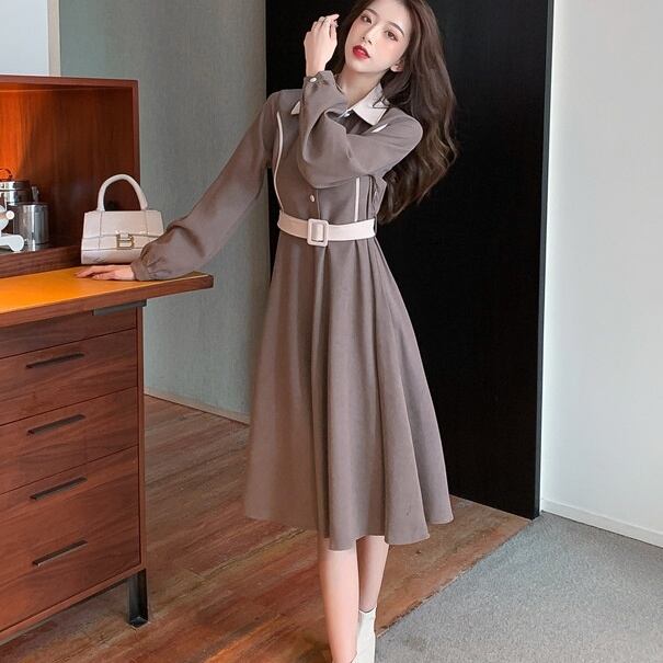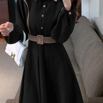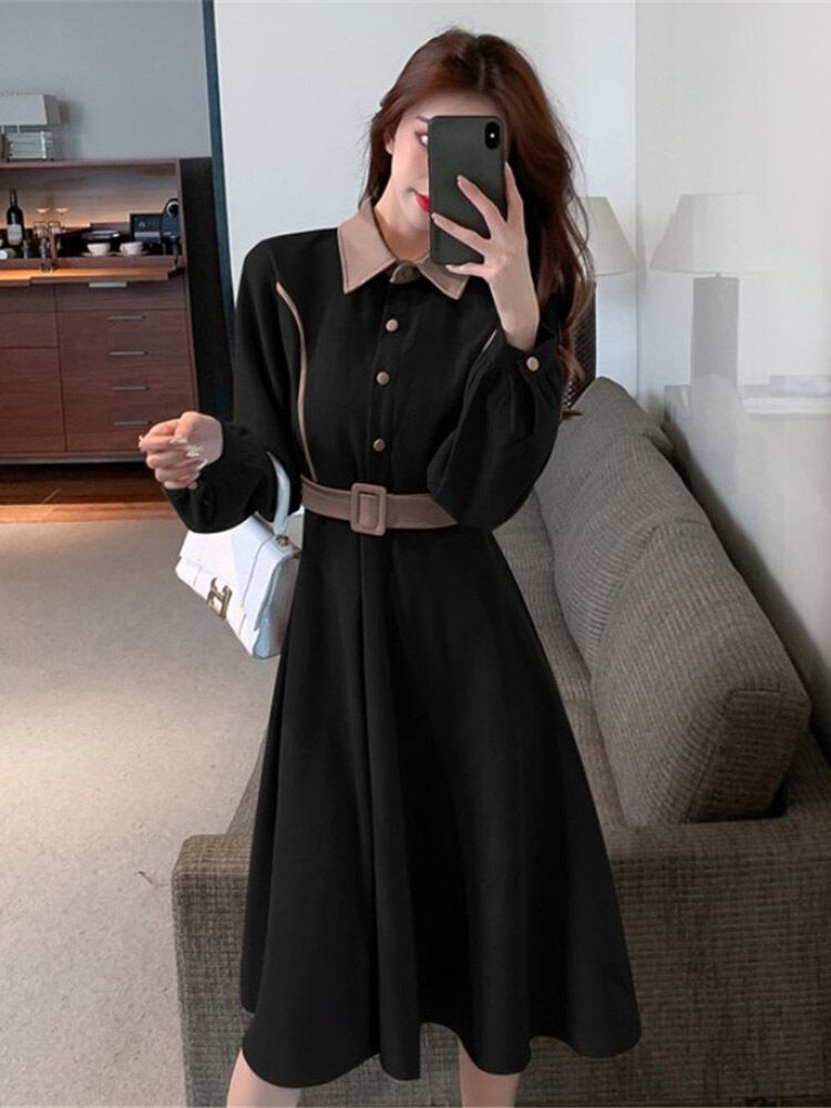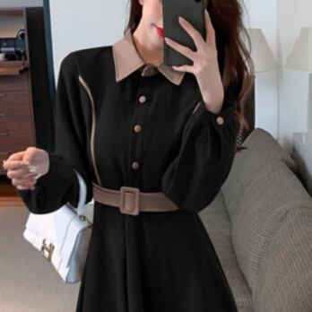 ワンピース 膝下 ミモレ ミモレ丈 長袖 襟付き ウエストマーク ハイウエスト バイカラー かわいい 大人可愛い きれいめ シンプル 大人 上品 おしゃれ お洒落 レトロ 大人可愛い 大人女子 こなれ感 キュート ガーリー 主役級 存在感 無地 春 秋 冬 10代 20代 30代 レディース 女性用 ママ 女の子 学生 デート お出かけ 女子会 お泊まり 休日 着回し 普段使い 韓国 韓国系 ファッション コーデ スタイル 楽ちん モテ 新作 定番 送料無料 トレンド 流行 インスタ映え インポート 海外