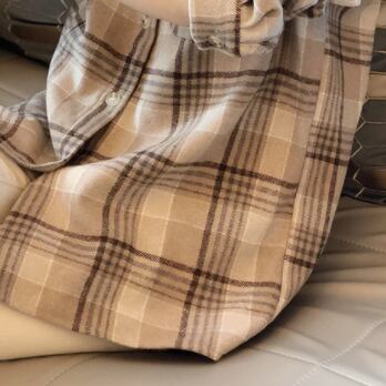 このチェック柄シャツは、韓国のファッションを参考に作られました。柄の色彩やチェックの大きさは、全て厳選しています。着心地もよく、軽い素材を使用しているので、暑い季節でも快適に着用できます。