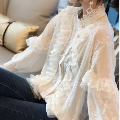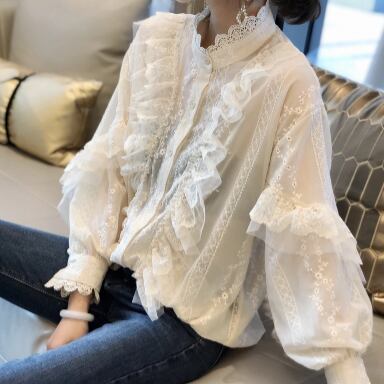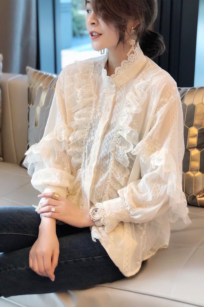 フリルブラウス トップス シャツ ブラウス 白トップス 長袖 ハイネック レース 刺繍 フリル かわいい 大人可愛い きれいめ 大人 上品 おしゃれ お洒落 大人可愛い 大人女子 ラブリー キュート ガーリー 個性的 エレガント 主役級 存在感 無地 春 秋 入学式 入園式 卒業式 卒園式 10代 20代 30代 40代 レディース 女性用 ママ 女の子 学生 デート お出かけ 女子会 お泊まり 休日 パーティー イベント 着回し 韓国 韓国系 ファッション コーデ スタイル モテ 新作 インポート 海外