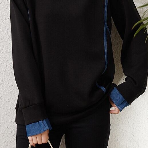 襟付きトレーナー ブラック トップス トレーナー スリム 細身 ストレート スマート かわいい きれいめ シンプル 大人 上品 おしゃれ 大人可愛い 大人女子 こなれ感 ラフ クール モード系 セクシー エレガント 無地 春 秋 冬 誕生日 謝恩会 二次会 ハロウィン クリスマス バレンタイン レディース 女性用 学生 通学 デート お出かけ 女子会 お泊まり 休日 アウトドア パーティー イベント リゾート 旅行 ホテル レストラン 着回し 普段使い 韓国 韓国系 オルチャン ファッション コーデ 定番