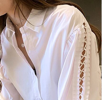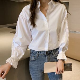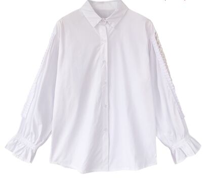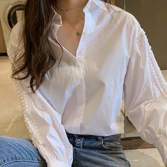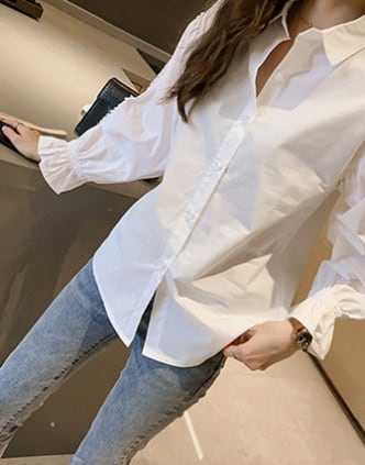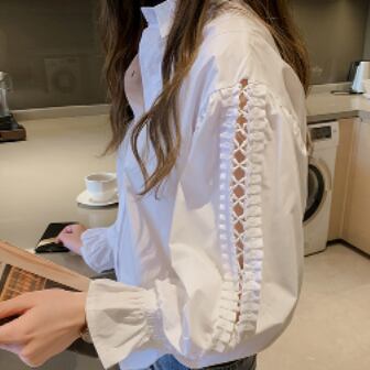 袖のフリルと編み上げデザインが目を引くシャツです!