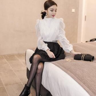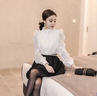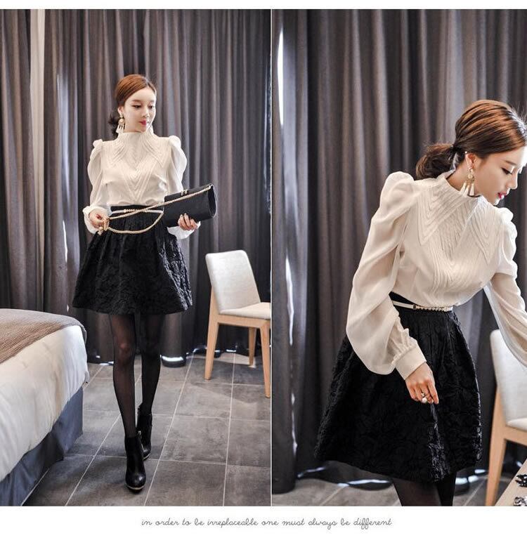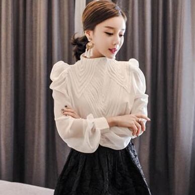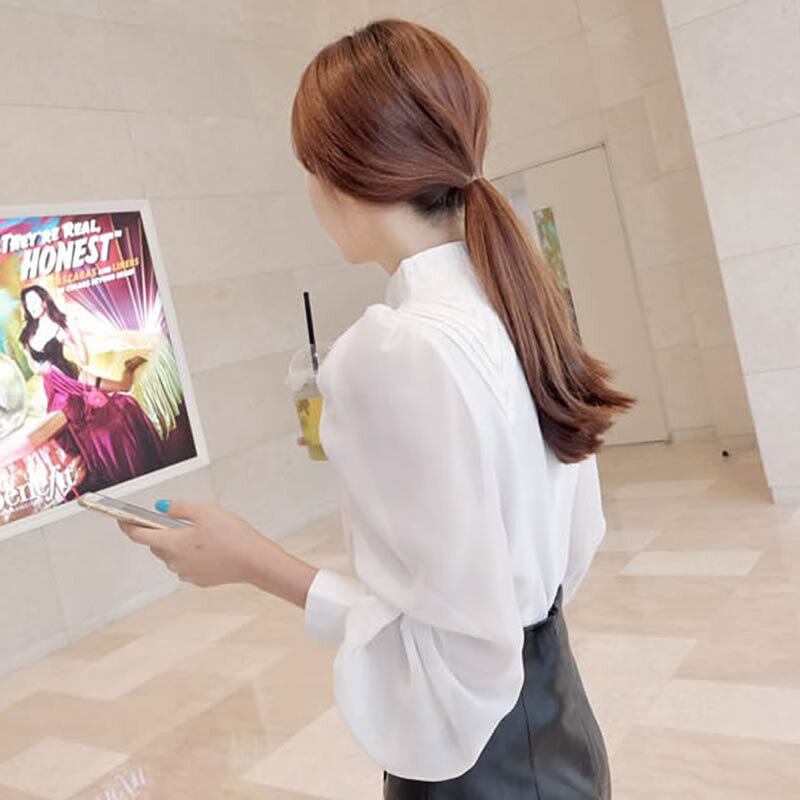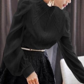 シフォンシャツ トップス シャツ ブラウス クラシック ブラック 黒 ホワイト 白 レギュラー丈 袖あり 長袖 ランタンスリーブ スタンドカラー ストレート 大人女子 大人 上品 おしゃれ きれいめ シンプル エレガント デイリーウェア レトロ レトロ風 こなれ感 個性的 デザイン 主役級 存在感 無地 春 スプリング 20代 30代 40代 レディース 女性用 オフィス ビジネス OL 通勤 デート お出かけ 女子会 食事会 トレンド S M L XL