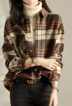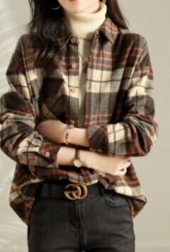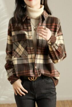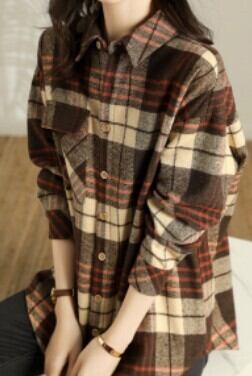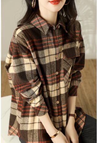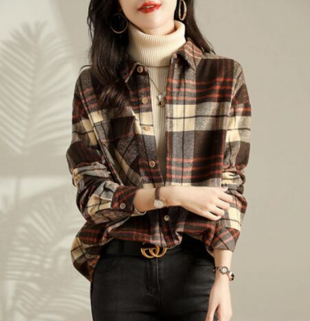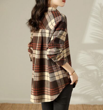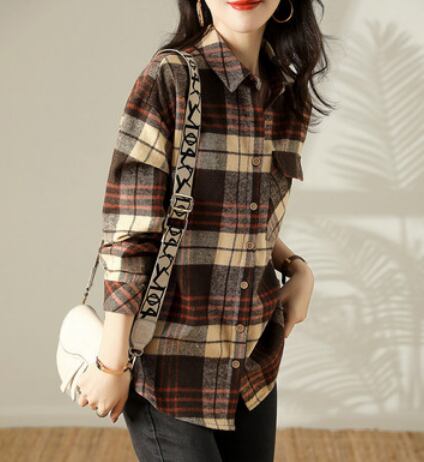チェック長袖シャツ トップス シャツ ブラウス ロング 長袖 襟付き 綿 かわいい 大人可愛い きれいめ シンプル カジュアル 大人 上品 おしゃれ お洒落 かっこいい レトロ 大人可愛い ラフ ボーイッシュ 柄 チェック柄 春 秋 冬 10代 20代 30代 40代 50代 60代 レディース ママ 女の子 学生 通学 デート お出かけ 公園デビュー 休日 アウトドア 旅行 着回し 普段使い 重ね着 お揃い 双子 ファッション コーデ スタイル 楽ちん プレゼント ギフト S M L XL ブラウン