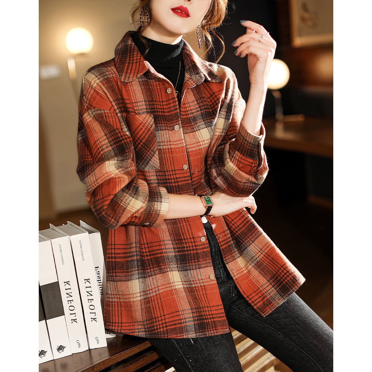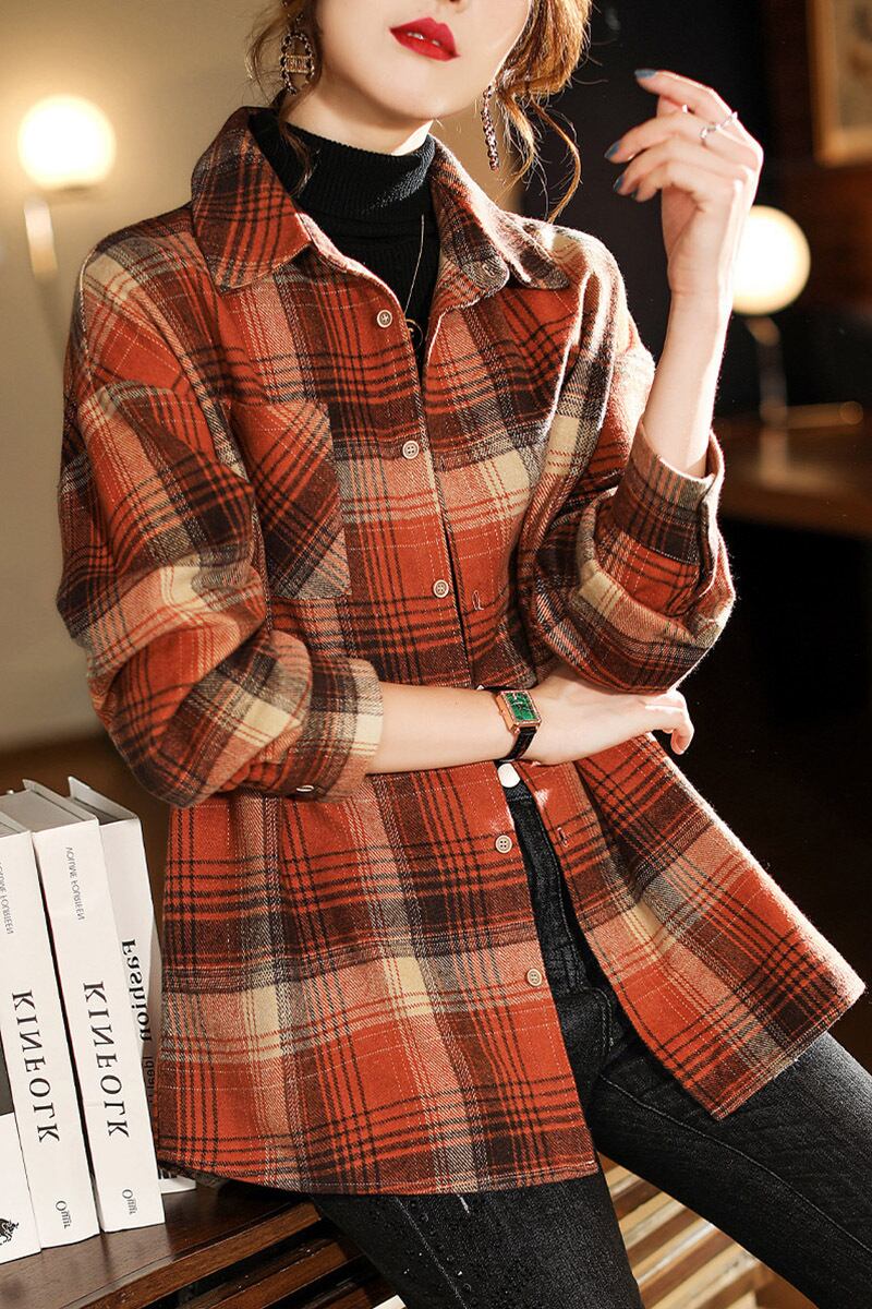 大人チェック長袖シャツ トップス シャツ ブラウス ロング ロング丈 長袖 襟付き 綿 かわいい 大人可愛い きれいめ シンプル カジュアル 大人 上品 おしゃれ かっこいい レトロ 大人女子 ラフ ボーイッシュ 柄 チェック柄 春 秋 冬 母の日 10代 20代 30代 40代 50代 60代 レディース ママ 女の子 オフィス 通勤 学生 通学 デート お出かけ 公園デビュー お泊まり 休日 アウトドア 着回し 普段使い 重ね着 お揃い 双子 ファッション コーデ スタイル 楽ちん 暖かい M