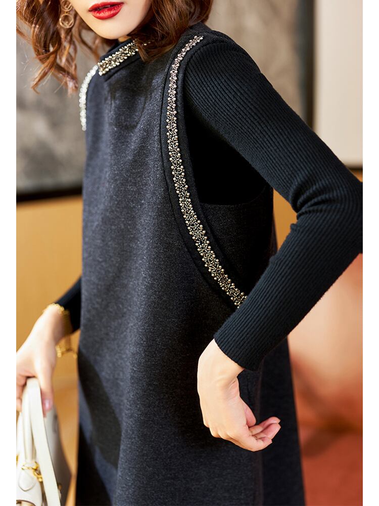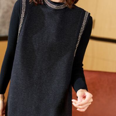 エレガントでシンプルなデザインが魅力のウールワンピース トップス。ミニ丈でありながらも、長袖でカバー力も抜群。ぴったりとしたシルエットが、大人女子にぴったりの上品な装いを演出します。黒とグレーという定番カラーで、幅広いシーンで活躍してくれます。重ね着も自由自在で、レイヤードコーデもおすすめです。