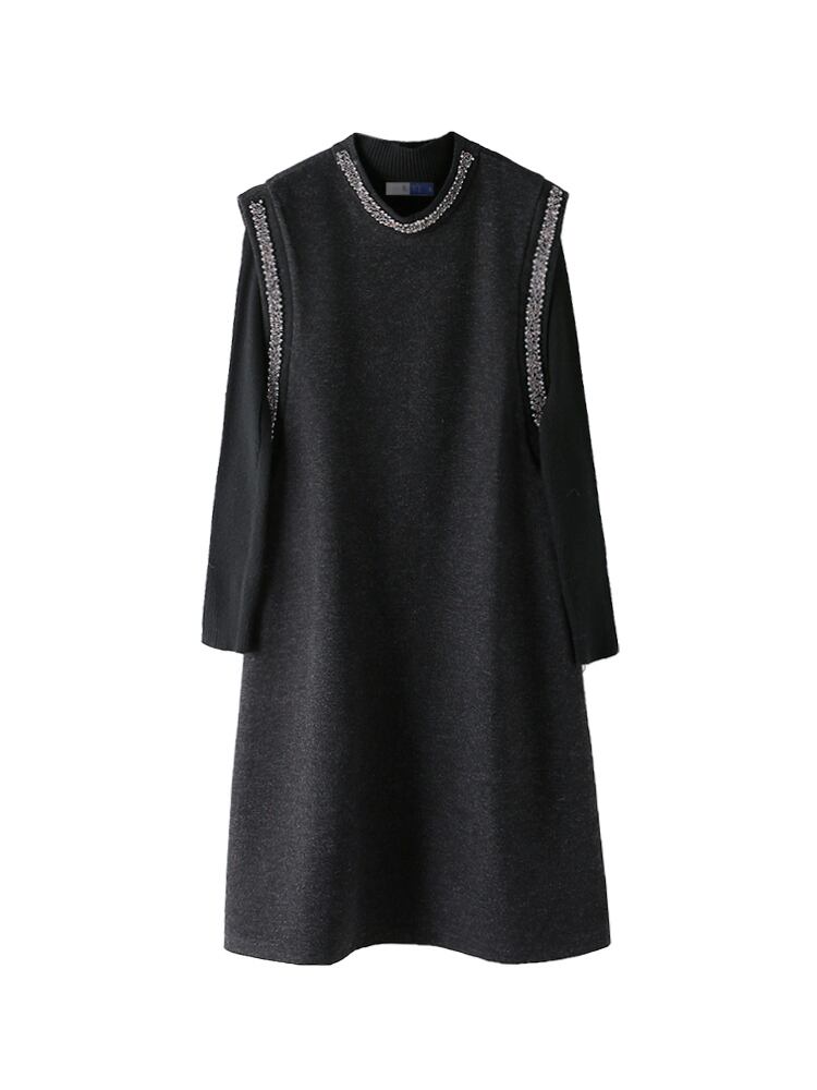 ウールワンピース トップス シンプル ブラック 黒 グレー 灰色 ミニ丈 ショート丈 袖あり 長袖 スリム 細身 タイト 大人女子 大人 上品 おしゃれ きれいめ シンプル デイリーウェア レトロ レトロ風 こなれ感 個性的 デザイン 主役級 存在感 無地 秋 オータム 冬 ウインター 20代 10代 レディース 女性用 学生 学校 通学 デート お出かけ 女子会 食事会 着回し 普段使い 重ね着 レイヤード S M L XL 2XL 大きいサイズ