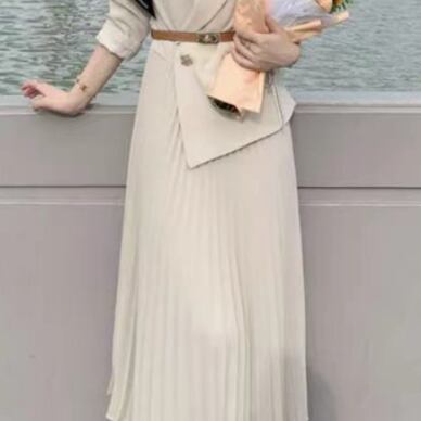 さり気なく揺れるプリーツスカートが大人っぽい1着です♪