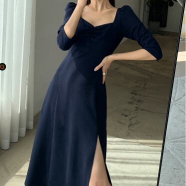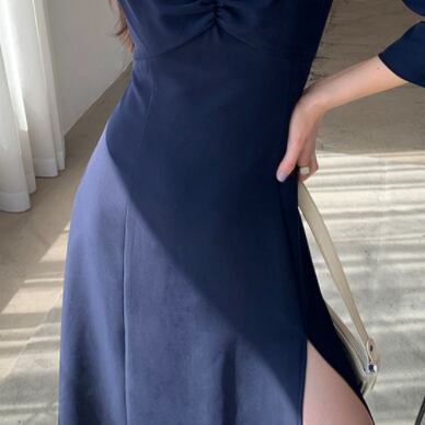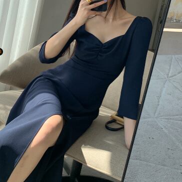 パーティドレス ワンピース ドレス ロング ロング丈 長袖 スクエアネック 襟付き スリム タイト 細身 プリーツ スリット サイドスリット かわいい 大人可愛い きれいめ 大人 上品 おしゃれ お洒落 かっこいい 大人可愛い 大人女子 キュート ガーリー 個性的 モード系 エレガント 主役級 存在感 フォーマル 無地 春 秋 結婚式 二次会 披露宴 10代 20代 30代 40代 レディース 女性用 ママ 女の子 パーティー イベント 韓国 韓国系 オルチャン ファッション コーデ スタイル セクシー