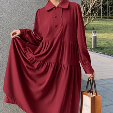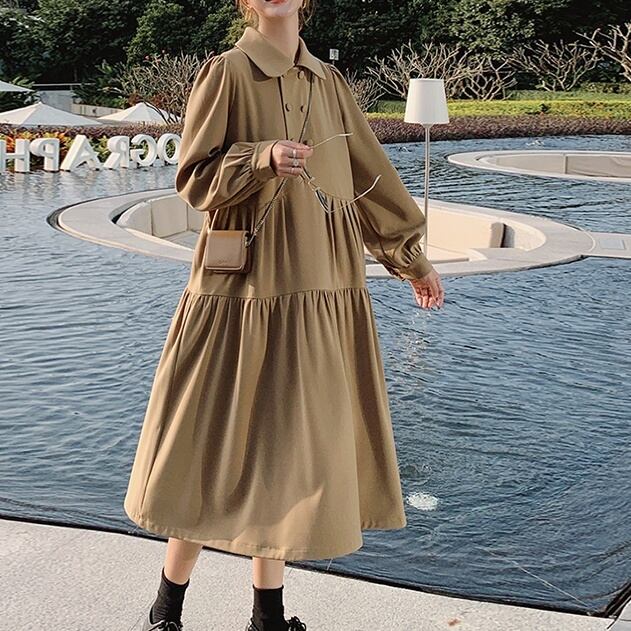 ティアードワンピース ワンピース 長袖 襟付き 丸襟 フレア ボタン かわいい 大人可愛い おしゃれ お洒落 レトロ 大人可愛い 大人女子 ラブリー キュート ガーリー エレガント 主役級 存在感 無地 春 秋 10代 20代 30代 レディース 女性用 ママ 女の子 デート お出かけ 女子会 お泊まり 休日 着回し 普段使い 韓国 韓国系 ファッション コーデ スタイル 楽ちん モテ 体系カバー 美脚 脚長 新作 定番 送料無料 トレンド 流行 インスタ映え インポート 海外 人気 大人カジュアル