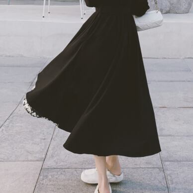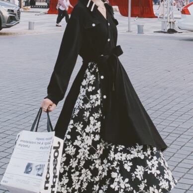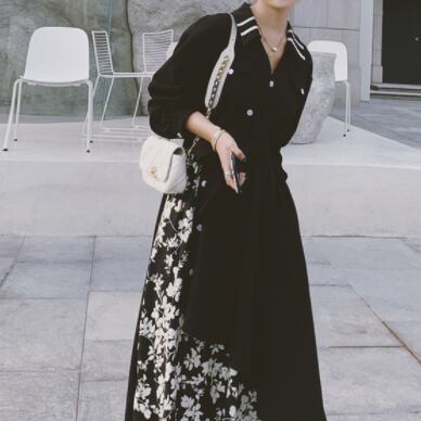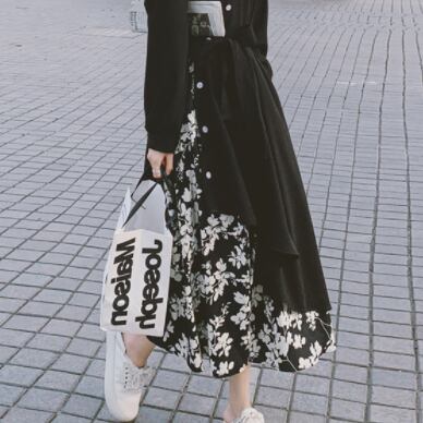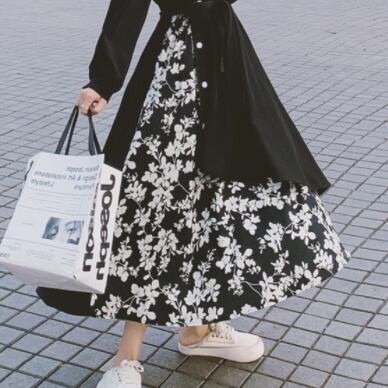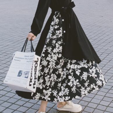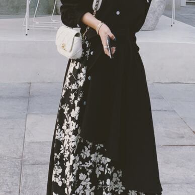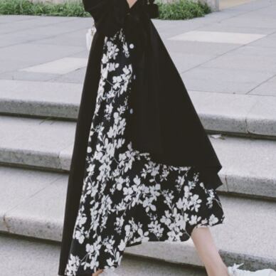 花柄と黒のコントラストがワンランク上のコーディネートを演出してくれます♪
