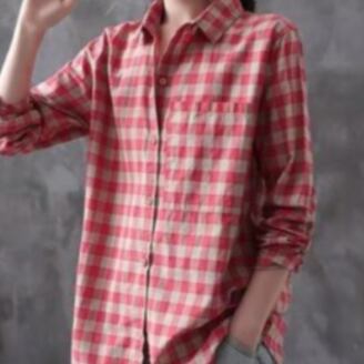カジュアルチェック長袖シャツ トップス シャツ ブラウス 長袖 ボタン かわいい 大人可愛い きれいめ シンプル カジュアル 大人 上品 おしゃれ お洒落 かっこいい ラフ メンズライク ボーイッシュ 柄 チェック柄 春 秋 ウォーキング 10代 20代 30代 40代 50代 60代 レディース ママ 女の子 学生 通学 デート お出かけ 公園デビュー 休日 アウトドア 高原 お散歩 着回し 普段使い 重ね着 ファッション コーデ スタイル プレゼント 定番 M L XL ゆったり ゆる 赤 レッド
