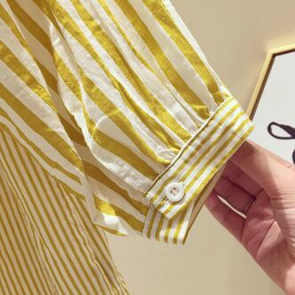 シンプルでありながら、トレンド感あるストラップ柄が魅力のシャツです。スリムなシルエットでコンパクトな印象を与え、大人の女性にぴったりなデザインです。春秋冬はもちろん、夏の肌寒いときにも活躍する、季節を問わない一着です。