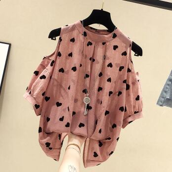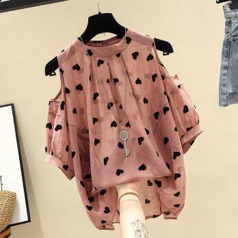 愛らしいハート柄が可愛らしいブラウスをご紹介します。オフショルダーデザインで思わず素肌が覗くのがセクシーなアイテム。スリムなシルエットがスマートで、細身の女性にぴったりです。3色展開なので、気分やコーディネートに合わせて楽しめる一枚です。