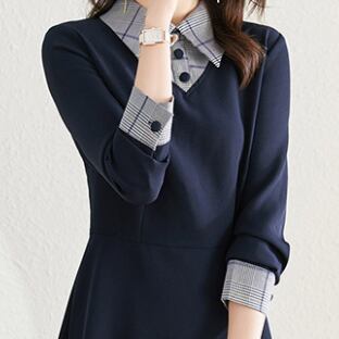重ね着風ひざ丈ワンピース ワンピース ひざ丈 長袖 襟付き フレア Aライン かわいい 大人可愛い きれいめ シンプル 大人 上品 おしゃれ レトロ 大人女子 爽やか 大人スタイル 清潔感 無地 柄 チェック柄 春 秋 冬 10代 20代 30代 40代 50代 レディース ママ 女の子 オフィス OL 通勤 学生 通学 デート お出かけ 休日 ホテル レストラン お散歩 人気 着回し 重ね着 ファッション コーデ ギフト 定番 お得 好感度 イメージアップ S M L XL サイズ豊富