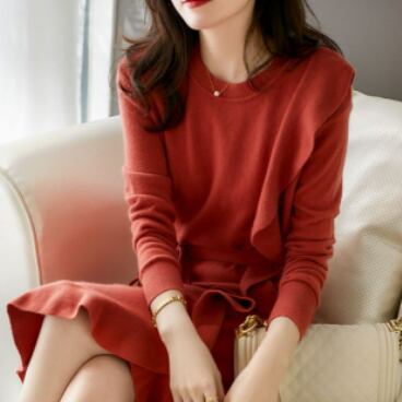 片側ラッフルフリル ラップ風 イレギュラーヘム アシンメトリー フェミニン ワンピース ひざ丈 膝下 ミディアム丈 袖あり 長袖 ラウンドネック Aライン ニット 大人可愛い きれいめ シンプル カジュアル 上品 おしゃれ こなれ感 エレガント 無地 春 秋 冬 レディース ママ 通勤 学生 通学 デート お出かけ 女子会 休日 着回し 普段使い 重ね着 韓国系 オルチャン ファッション スタイル 楽ちん モテ 体系カバー S M L XL 大きめ ゆったり サイズ ブラック オレンジ キャメル