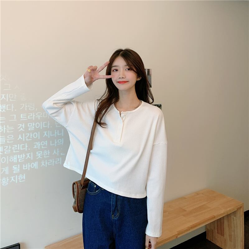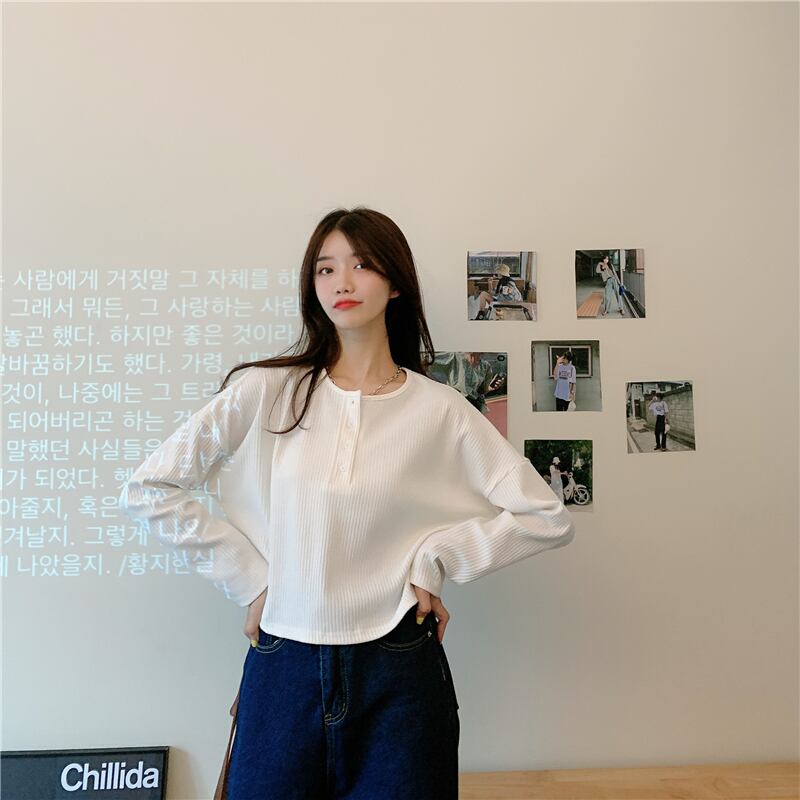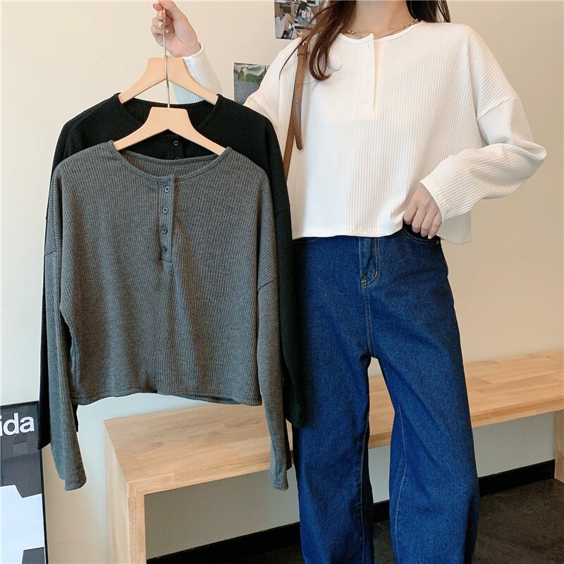 オーバーサイズ クロップド ヘンリーネック トップス カットソー ショート丈 長袖 ドロップショルダー ラウンドネック リブ 前開き シンプル カジュアル 大人女子 こなれ感 メンズライク ボーイッシュ ルーズ 無地 春 秋 レディース ママ 女の子 学生 通学 お出かけ 公園デビュー 女子会 休日 着回し 普段使い 重ね着 韓国系 オルチャン コーデ スタイル 楽ちん 定番 プチプラ 安い S M L XL 2XL 3XL 大きいサイズ 大きめ ゆったり ゆる サイズ ホワイト ブラック グレー