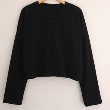 オーバーサイズのシルエットがおしゃれな、クロップドヘンリーネックトップスの登場です。ドロップショルダーとリブによるリラックス感が、ボーイッシュな大人女子にぴったり。前開きで着脱もスムーズです。カジュアルにもきれいめにもコーディネートできるシンプルで使いやすいアイテムです。