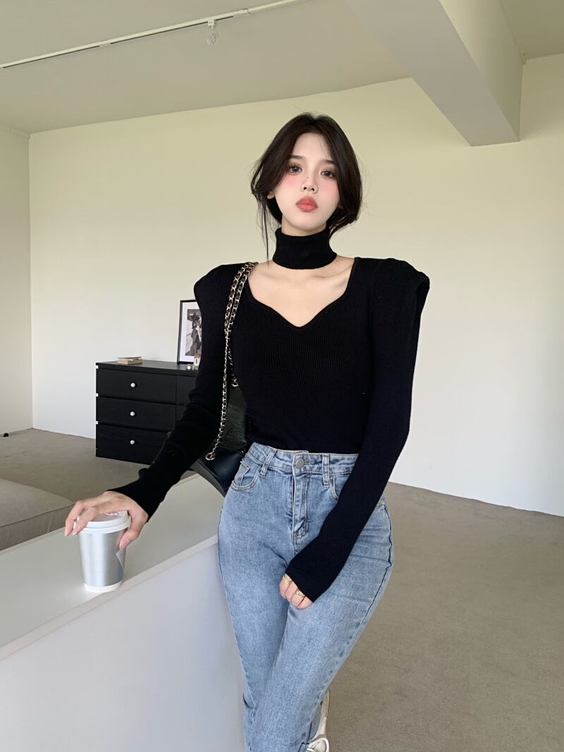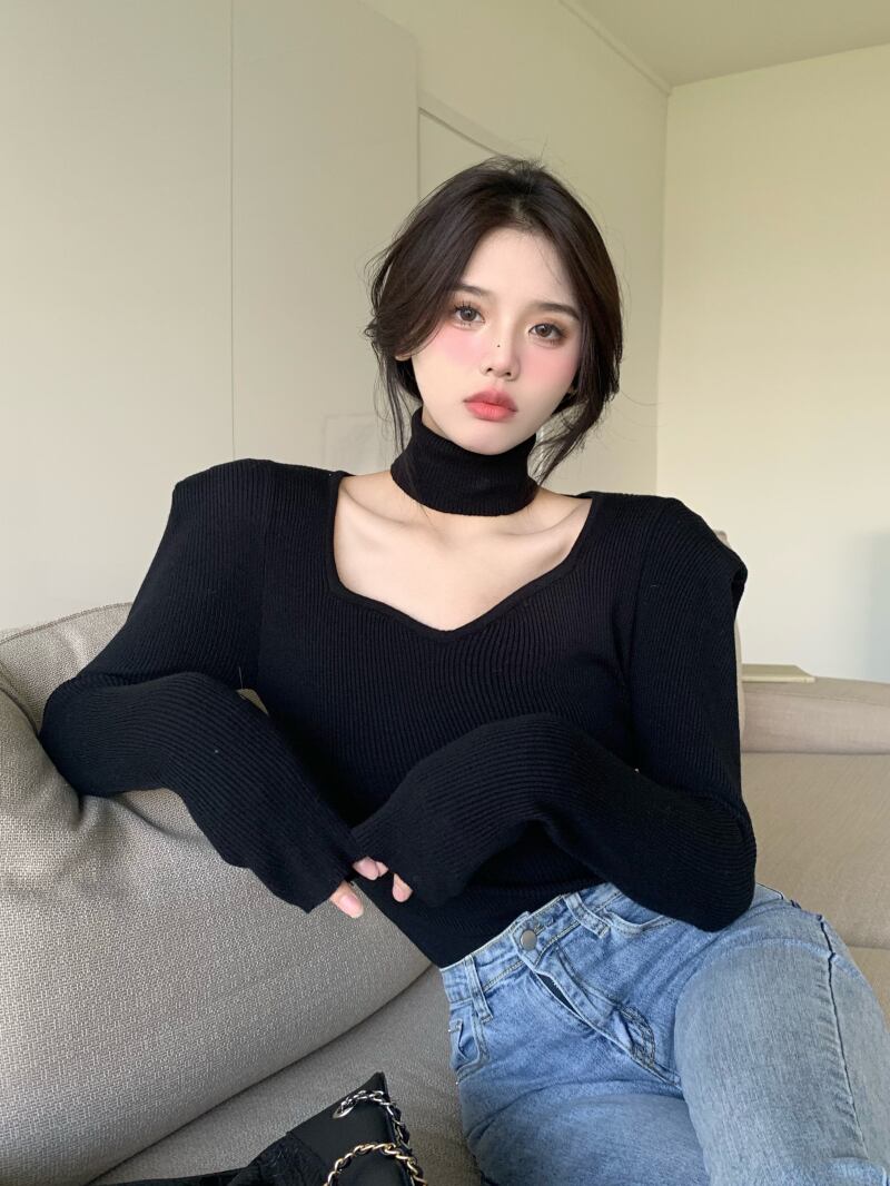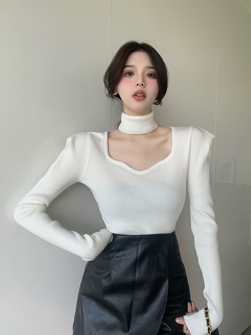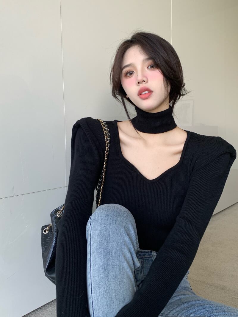 デコルテラインがきれいに見えるニットです!
