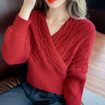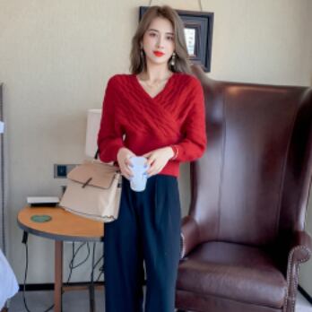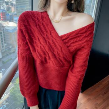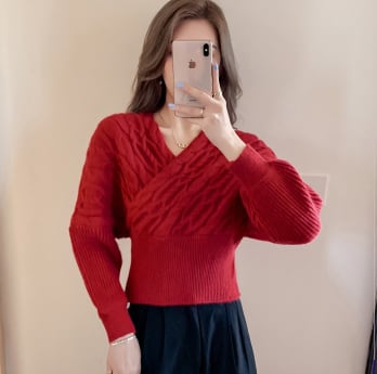 華奢なVネックラインとショート丈が印象的な、シンプルなニットトップスです。スリムなシルエットと細身の袖が大人女子にぴったり。無地のカラーバリエーションは、黒、アプリコット、レッドの3色展開で、あなたの好みに合わせてお選びいただけます。