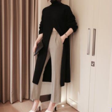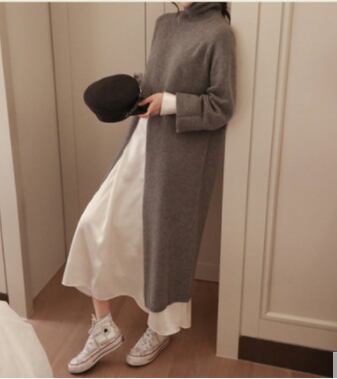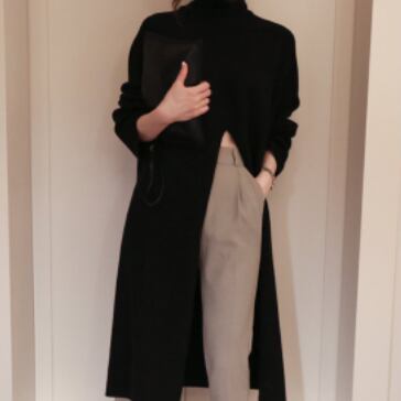 ハイスリットニットワンピース トップス シンプル ブラック 黒 グレー 灰色 ミドル丈 袖あり 長袖 タートルネック スリット 大人女子 大人 上品 おしゃれ かっこいい クール デイリーウェア レトロ レトロ風 こなれ感 ルーズ シルエット ラフ 個性的 デザイン 主役級 存在感 無地 秋 オータム 冬 ウインター 20代 30代 レディース 女性用 学生 学校 通学 デート お出かけ 女子会 食事会 着回し 普段使い スタイル S M L XL