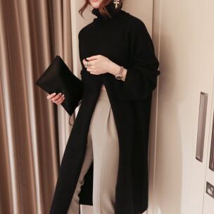 シンプルなのに存在感がある、ハイスリットニットワンピース。トップスとしても使える、大人女子にぴったりのアイテムです。タートルネックが首元をカバーしてくれるので、寒い季節には必需品。主役級の存在感があり、個性的なデザインでこなれ感とクールな雰囲気を演出します。また、ルーズなシルエットでラフな印象を与えるので、好きなファッションアイテムとの相性も抜群です。