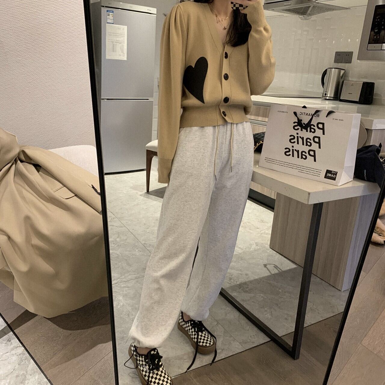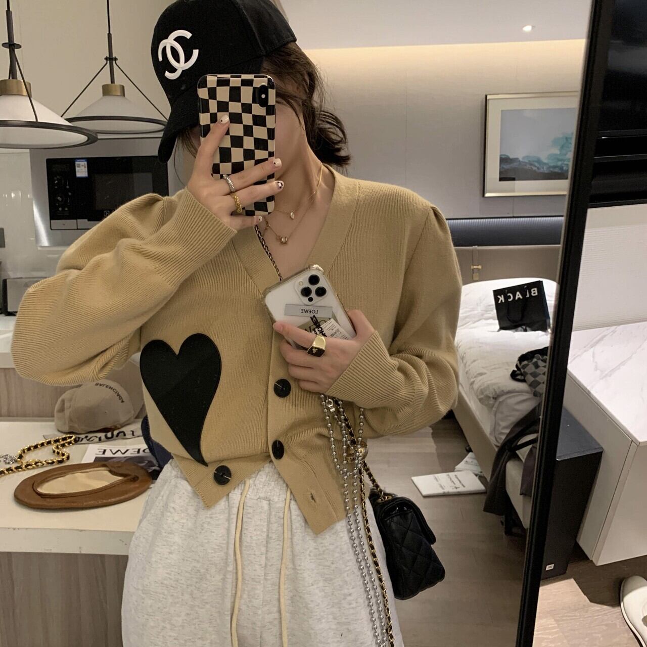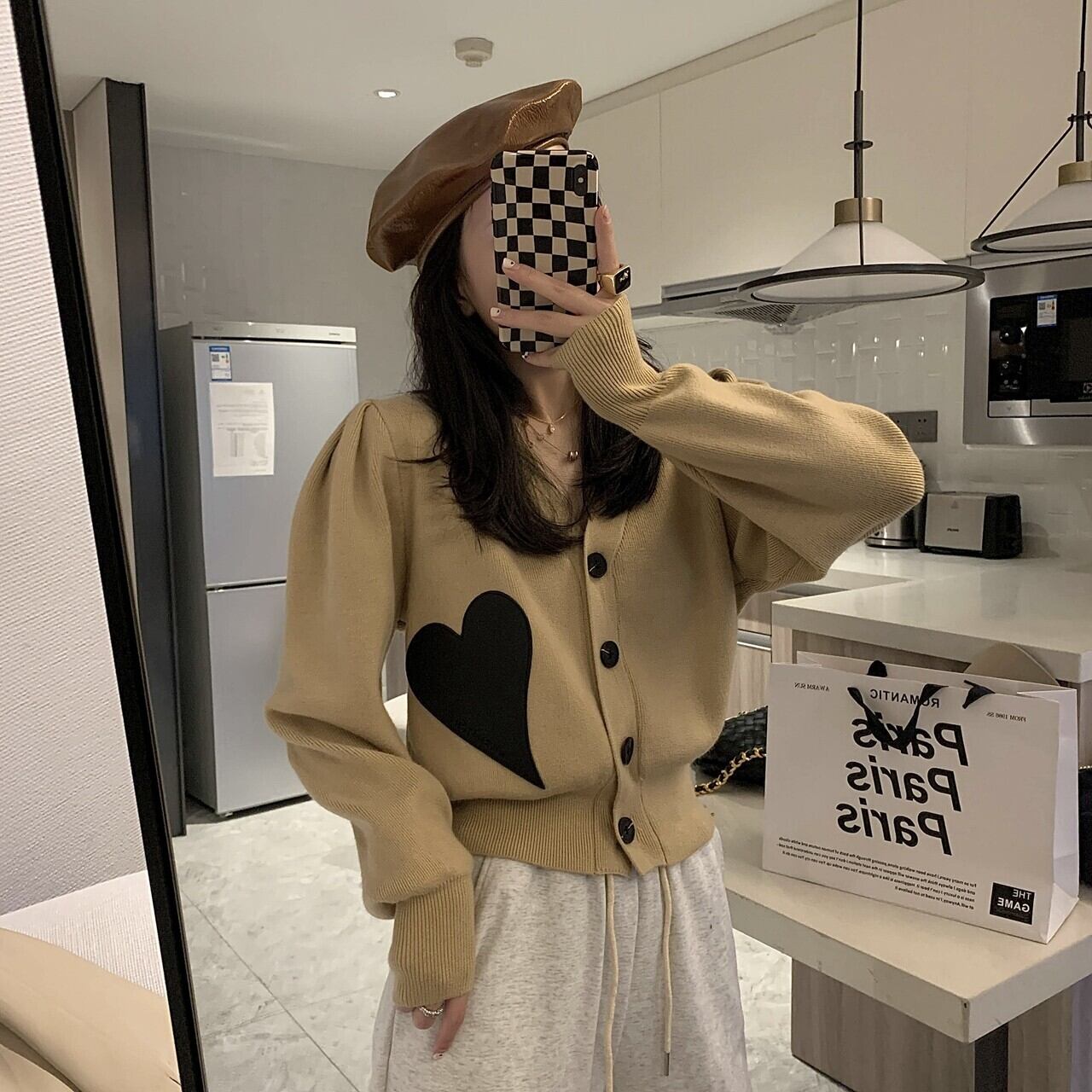 ハート模様が目を引くニットカーディガン