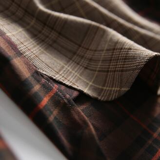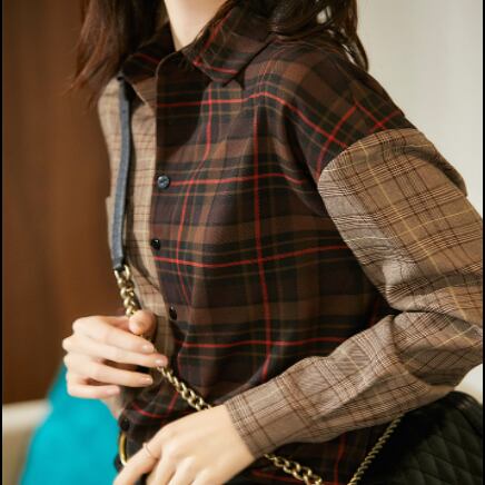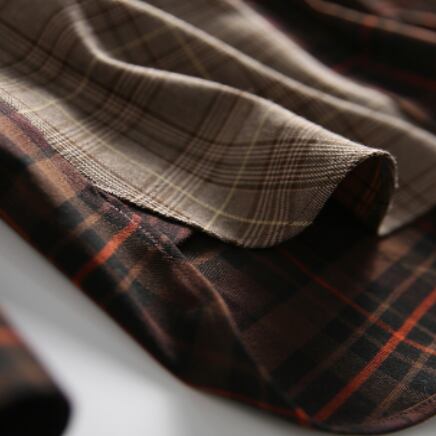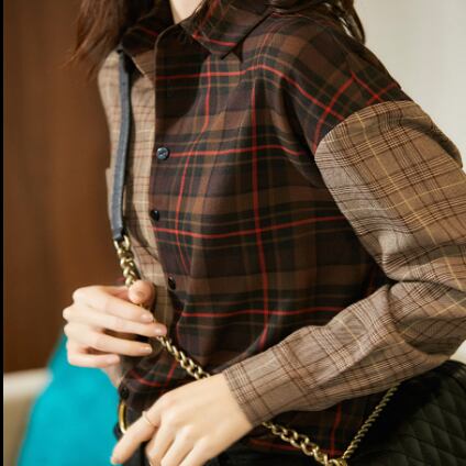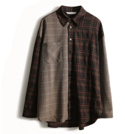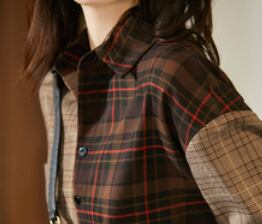 左右の色合いが違うブラウンがおしゃれなチェック柄長袖シャツです。