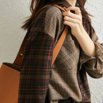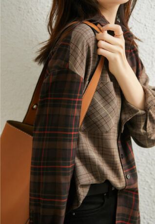 チェック柄長袖シャツ トップス シャツ ブラウス ロング丈 長袖 襟付き ストレート ポケット 綿 ボタン かわいい 大人可愛い きれいめ シンプル カジュアル 大人 上品 おしゃれ かっこいい 大人女子 ボーイッシュ 渋かわいい 柄 チェック柄 秋 冬 10代 20代 30代 40代 50代 レディース ママ 女の子 オフィス 通勤 学生 デート お出かけ 公園デビュー 女子会 お泊まり 休日 お散歩 人気 着回し 普段使い 重ね着 ファッション コーデ 定番 S M L XL 2XL 茶色