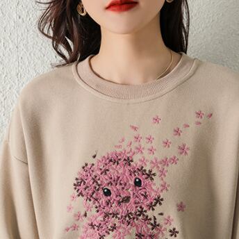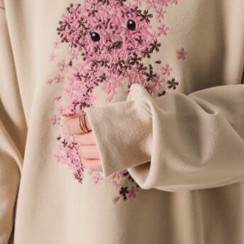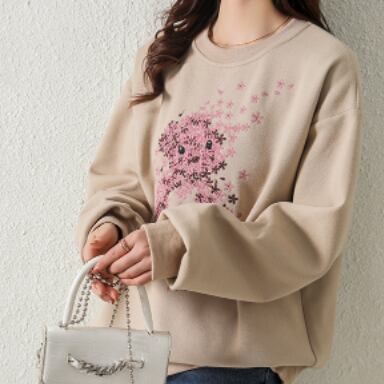 かわいいベアの刺繍がキュートな長袖トレーナーです。
