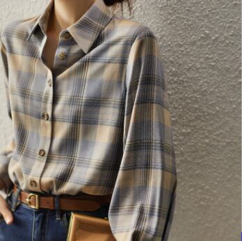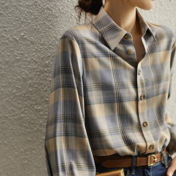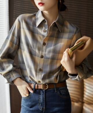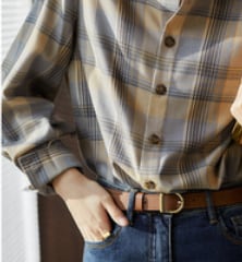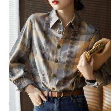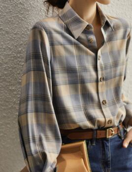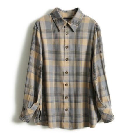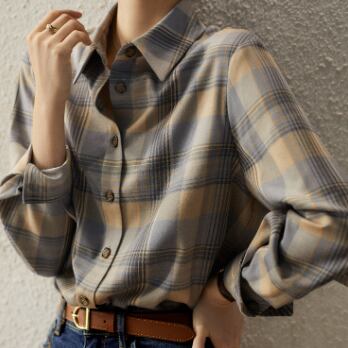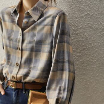 柔らかな生地とチェック柄がとても魅力的な長袖シャツです。大人の女性にピッタリの一枚で、かわいくも上品に着こなせます。トップスとしてはもちろん、カーディガンのインナーとしても使えます。